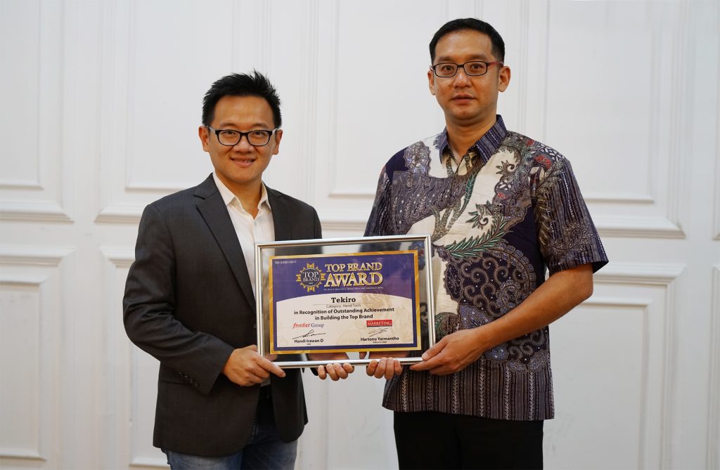 Penghargaan Top Brand 2021 untuk Tekiro secara langsung diberikan oleh Brian Hendrata, Managing Director Frontier kepada Stephanus Santoso, Wakil Presiden Direktur Tekiro. Mengingat masih diberlakukannya pembatasan aktivitas akibat pandemi Covid-19, penyerahan sertifikat Top Brand Award 2021 dilakukan di salah satu studio di kawasan Darmawangsa, Jakarta Selatan. Penghargaan Top Brand 2021 diberikan berdasarkan survei independen berskala […]